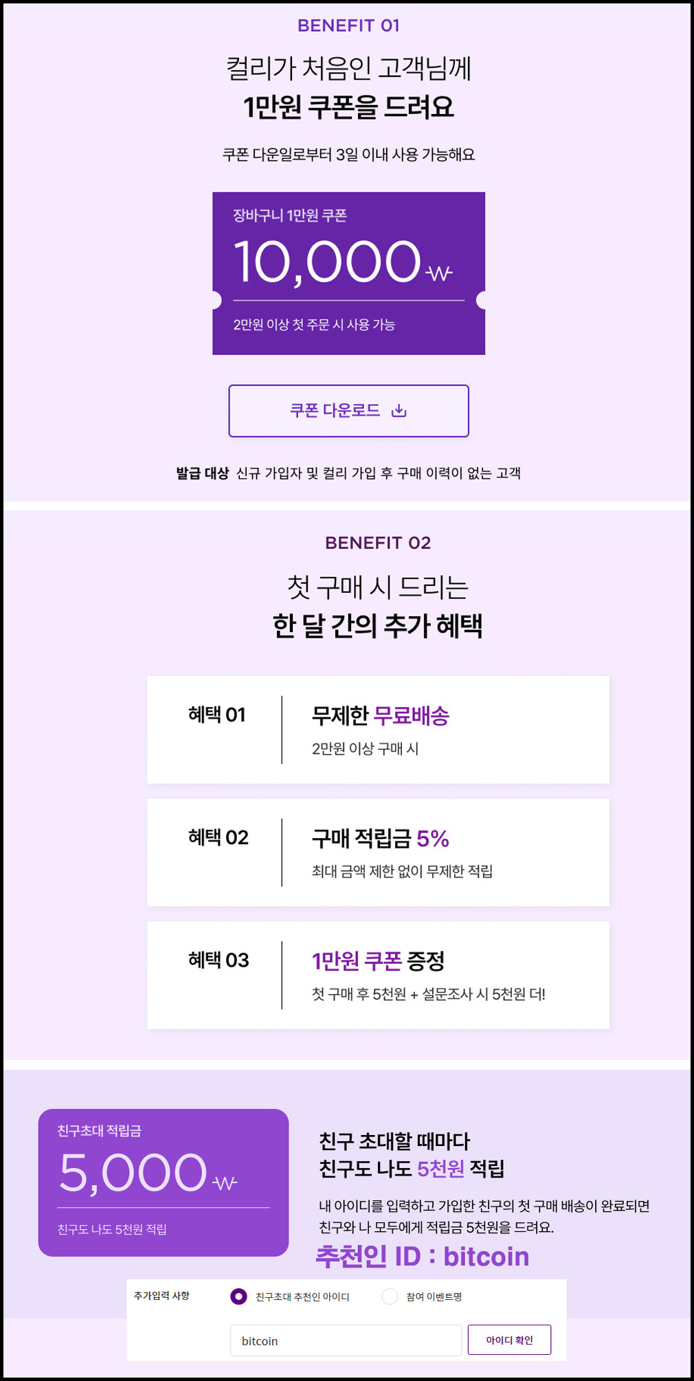 2> 마켓컬리 가입시에 .. 친구초대 추천인 ID 등록하면 .. 추가로 5천원 적립금 지급.