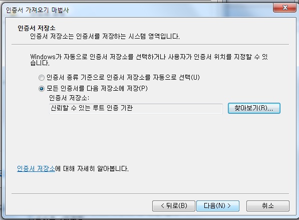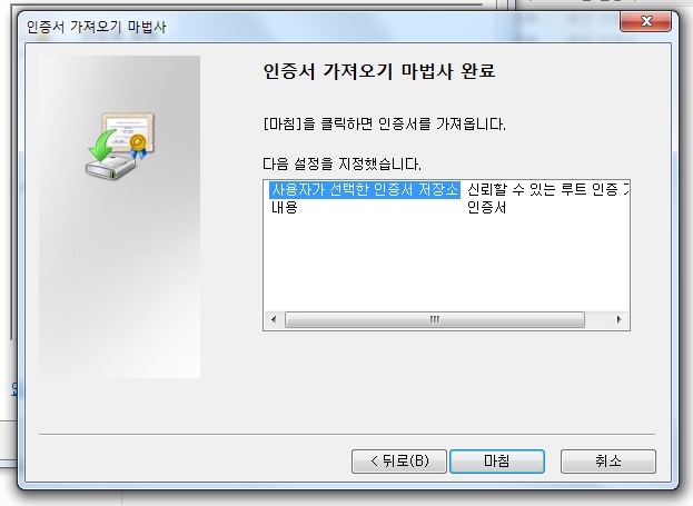 3> 사용자가 선택한 인증서 저장소 선택 / 마침