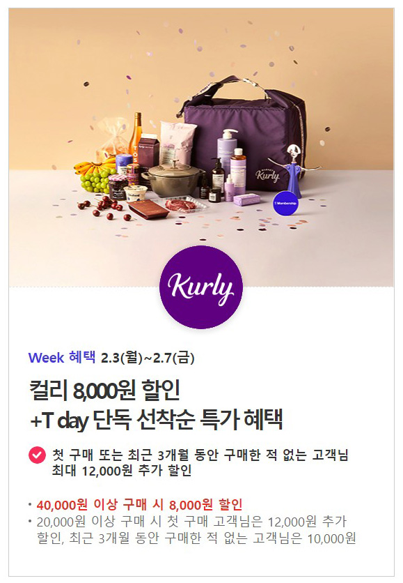 [BB] 마켓컬리(T멤버십) 8천원, 1만원 쿠폰 (2월3일-2월7일)