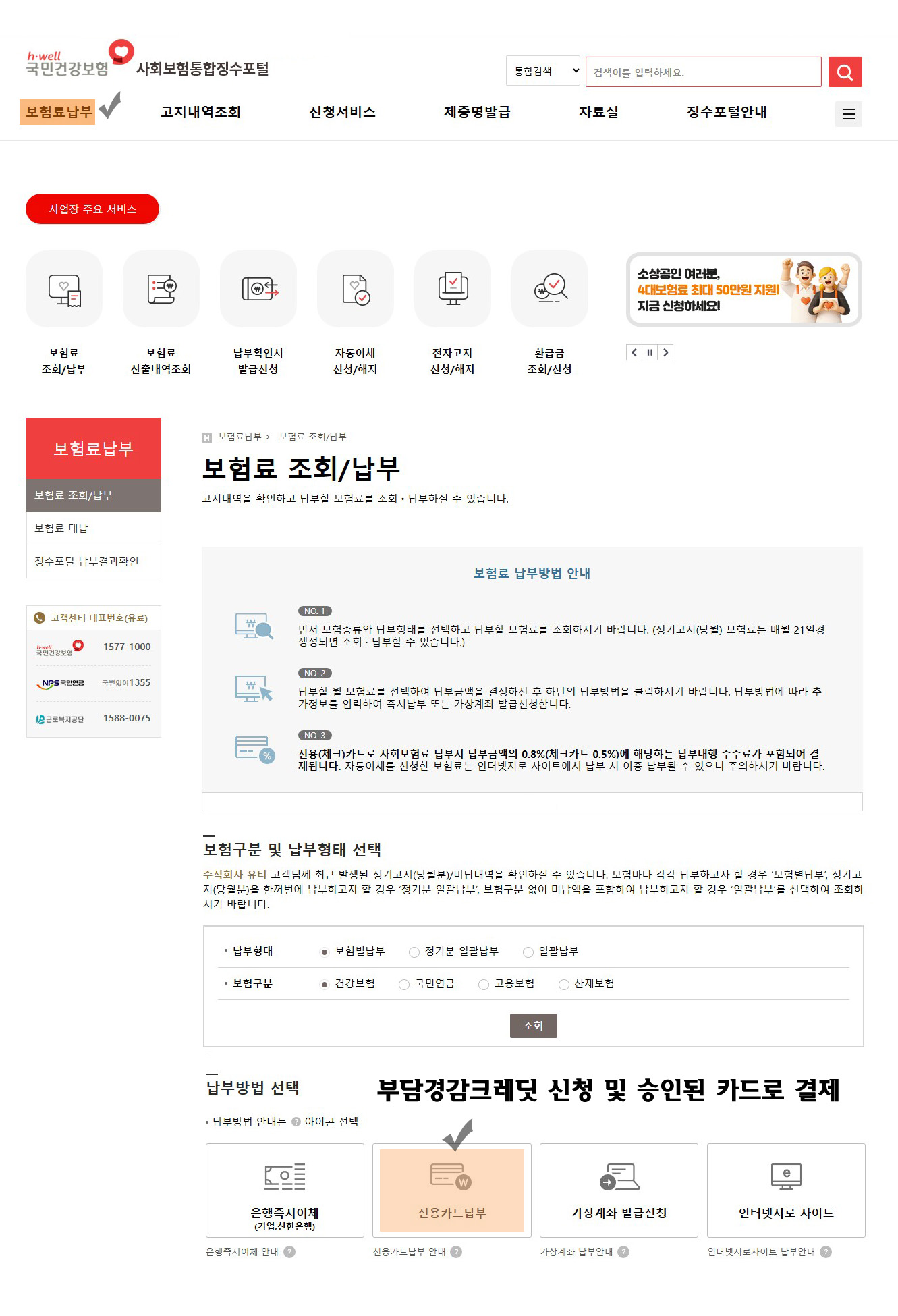 [BB] 부담경감 크레딧 4대 보험료 카드 납부 방법.