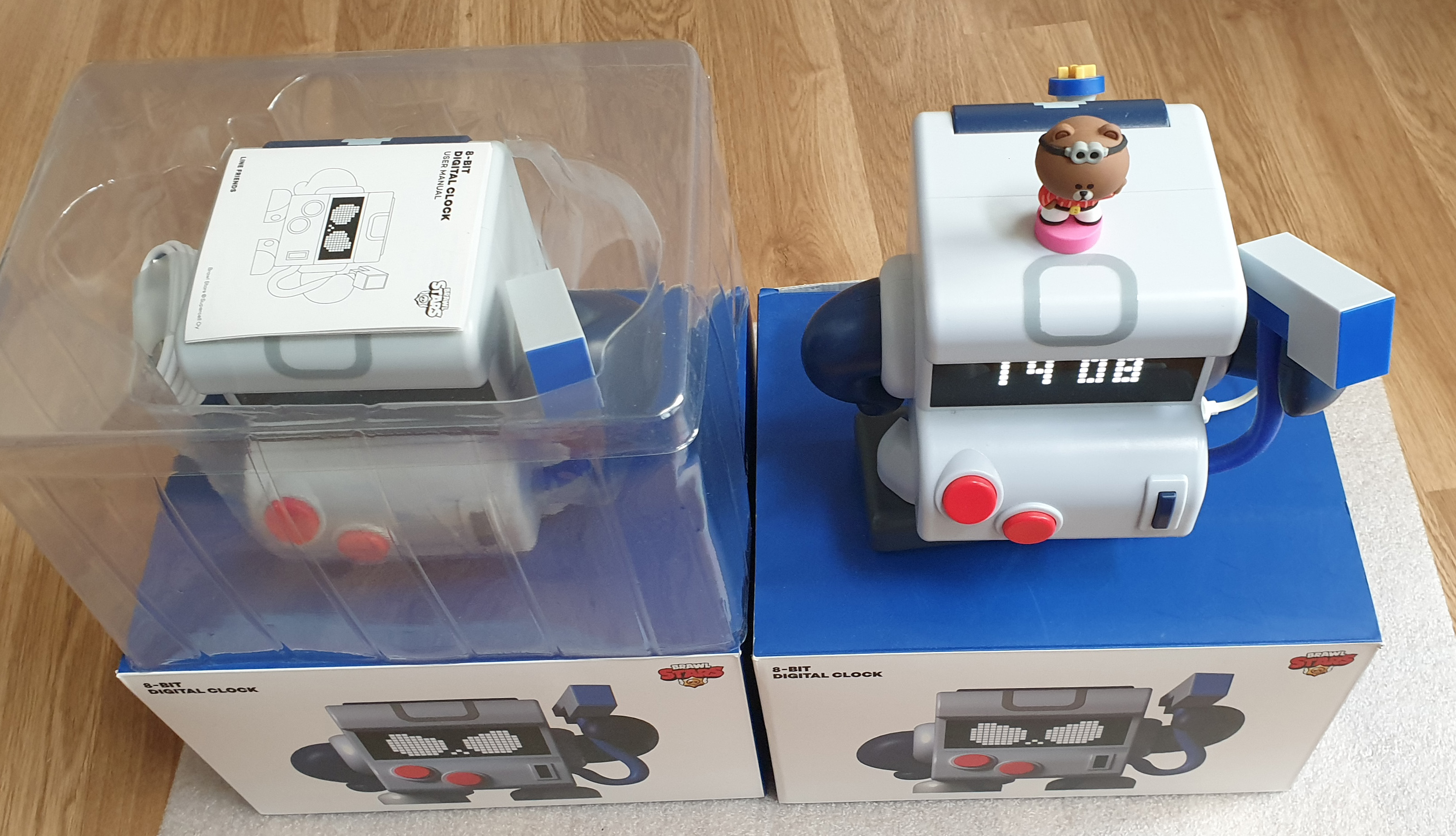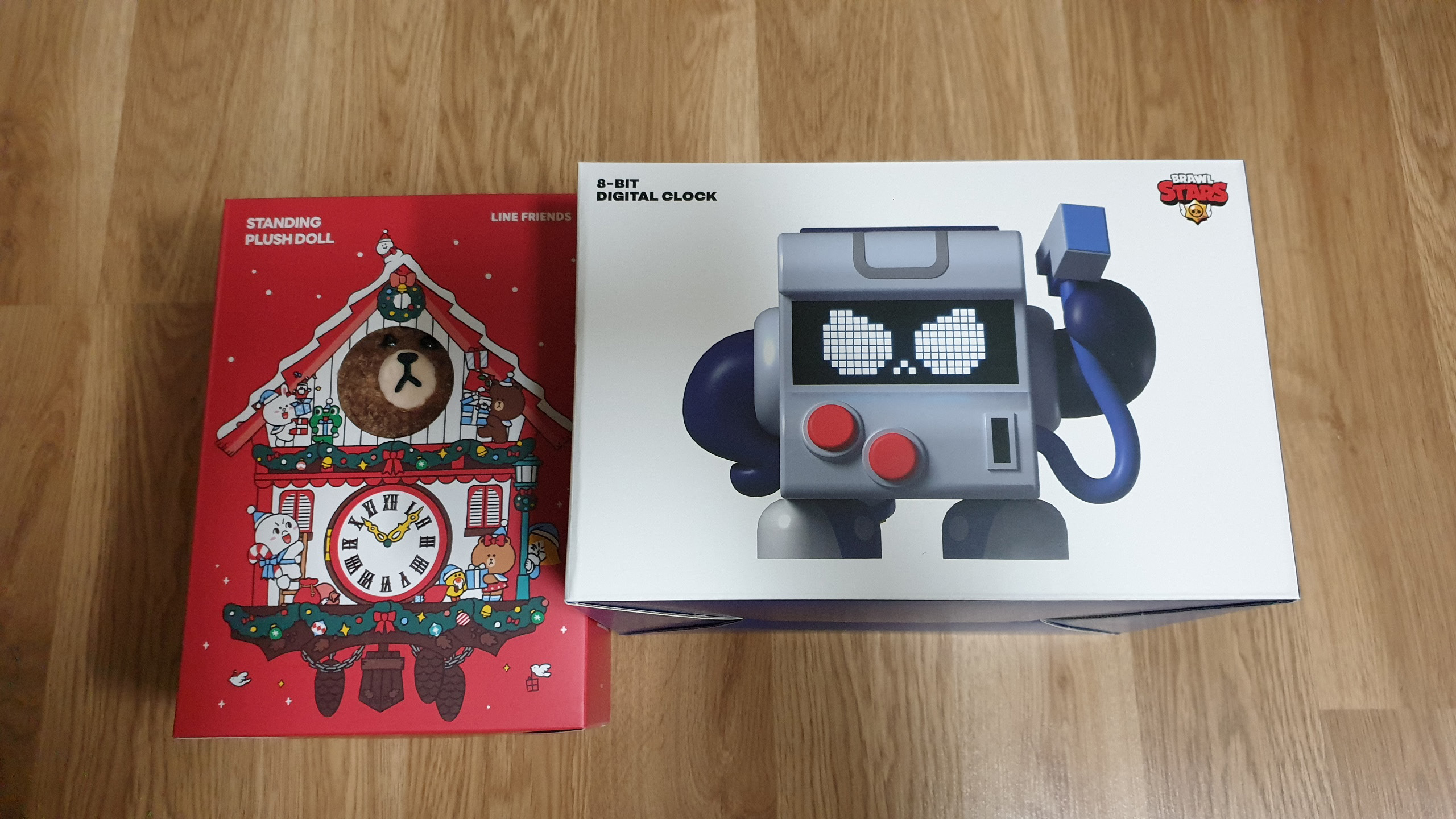 브롤스타즈 8비트 디지털 탁상시계 2개랑 ㅋㅋ 브라운 인형이 ..
