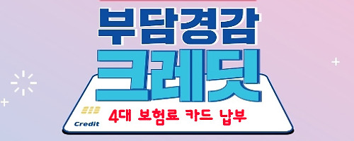 부담경감 크레딧 4대 보험료 카드 납부 방법 4대 보험료 자동이체가 신청된 경우에는 해지 후 재신청 또는 변경을 해야겠지요. 4대 보험료 자동이체를 사용하지 않는 경우에는 ..사회보험 통합징수 포털에서 신청하신 카드로 1회성으로 납부하시면 하면 됩니다.납부하시면 .. 보험료+카드수수료 만큼 크레딧 차감이 됩니다.문자 알림 해주고 .. 카드사에서 이용 내역과 남은 크레딧 정보를 제공해 줍니다. 사회보험 통합징수 포털 - https://si4n.nhis.or.kr 포털사이트(네이버,다음) 에서 .. 사회보험 통합징수 포털 검색해 보세요. 절차는 간단합니다.1. 부담경감크레딧 신청 및 승인을 받아야 합니다 ^^ 당연히 ..2. 사회보험 통합징수 포털 - https://si4n.nhis.or.kr3. 납부할 ..