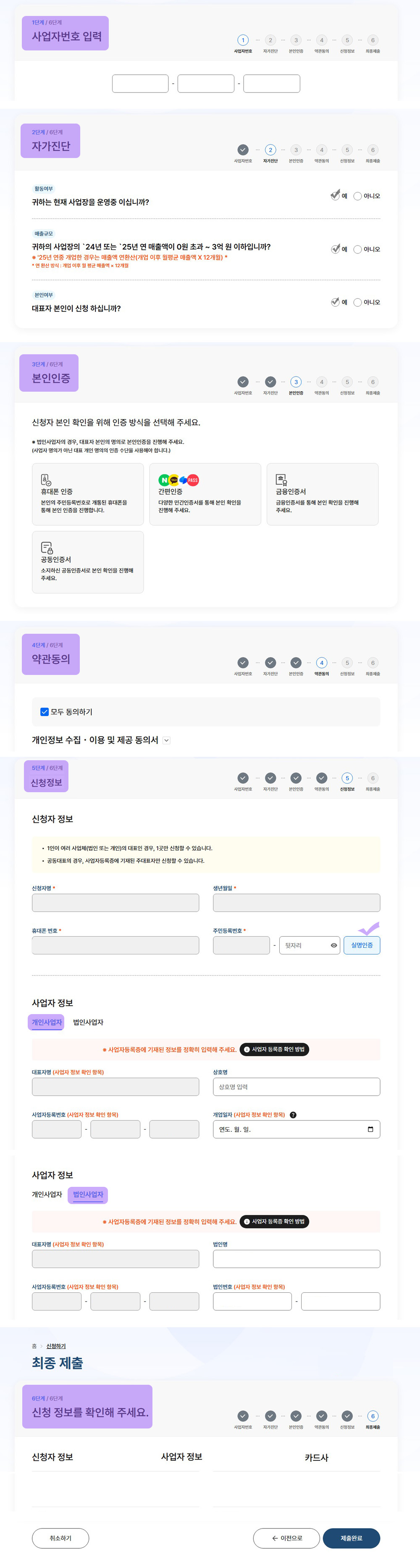 5. 신청정보 (실명인증, 사업자 정보 선택-개인 또는 법인)